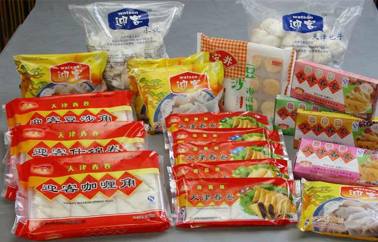 天津市第1食品加工厂是国内较早开发与研制速冻食品的厂家,“迎客”牌速冻食品以其精选原料、讲求工艺、精细加工、可靠质量,畅销国内,并出口日本、美国、韩国、澳大利亚、加拿大、香港等国家和地区。产品及品牌先后荣获“商业部优质产品金鼎奖”、“天津市优质产品”、“天津人较喜爱的消费品”、“全国十大城市消费者较喜爱的天津产品”、“天津市畅销产品品牌”、“质量百优示范产品”、“社会公认满意产品”、“天津市著名商标”等称号。是星火天津食品亚虎网页机械的客户,QLF-700A气动封口机用于迎客咖喱角、天津春卷、水饺、南瓜饼等的袋装封口。
