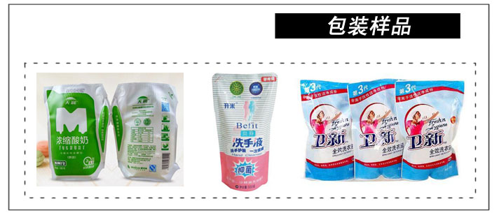 全自动自立袋洗衣液灌装机是星火新研发的一款产品,上袋、定量灌装、封合、切膜、自动计数一次性自动完成,工艺流程部位采用不锈钢制造,亚虎网页袋热合、送袋长度、亚虎网页重量、加热温度的调整,简便可靠,连续灌装精度高,亚虎网页速度快,维修方便,是用户致富选择的理想设备。亚虎网页产品美观牢靠,外壳、管道、定量泵采用不锈钢结构,确保卫生,符合食品卫生的要求
