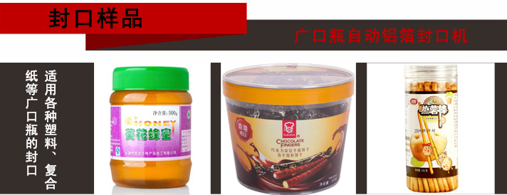 广泛应用于食品、饮料行业中各种塑料、复合纸等广口瓶容器的热合封口,具有防潮、防漏、延长产品保质期以及防盗、防伪的作用