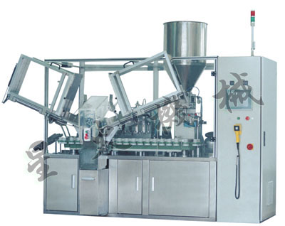 用途:RGDF-160B全自动灌装封尾机是一种对筒状金属软管或复合软管灌装膏状 物料并进行封尾的自动化程度较高的设备。符合GMP标准的新型不锈钢蝶阀计量泵,设有螺杆微调机构,秤量精确;采用光电识标机构,PLC可编程序控制,商标定位精确可靠;变频调速,复开森机构分度定位,采用国际较新型折边封尾机构。