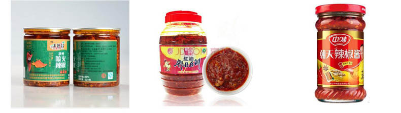 - 主要针对食品行业的酱类分装设计生产,特别适用于调味品中带颗粒并且浓度较大的辣椒酱、豆瓣酱、花生酱、芝麻酱、果酱、牛油火锅底料、红油火锅 底料等物质的粘稠 酱类的灌装