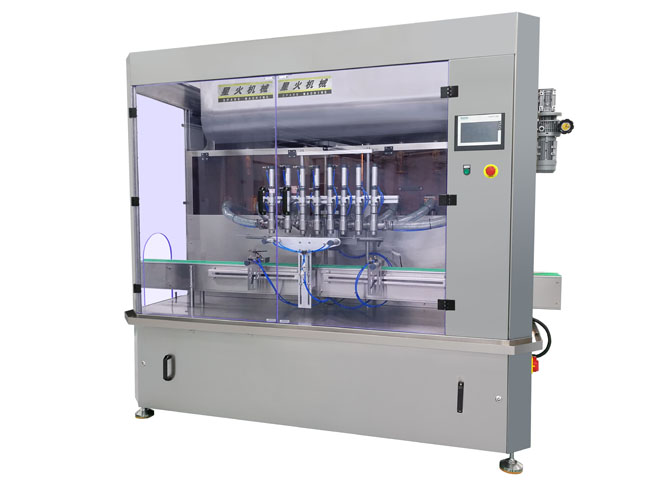 八头伺服颗粒酱料灌装机/豆瓣酱灌装机是星火在6头颗粒酱料灌装机基础上研发的一款升级型产品,广泛应用于颗粒酱料的的生产与分装行业,可8头同时连续自动运行灌装。专业针对大颗粒酱料灌装过程容易出现油料分离现象,机器设计紧凑合理、外形简洁美观,灌装量调节方便。全不锈钢,易清洁,采用韩国光眼装置,LG韩国PLC、法国电器元件,无瓶不灌装,配置防滴漏装置。可根据客户需求配置酱料瓶真空旋盖、自动贴标、喷码等配套设备。