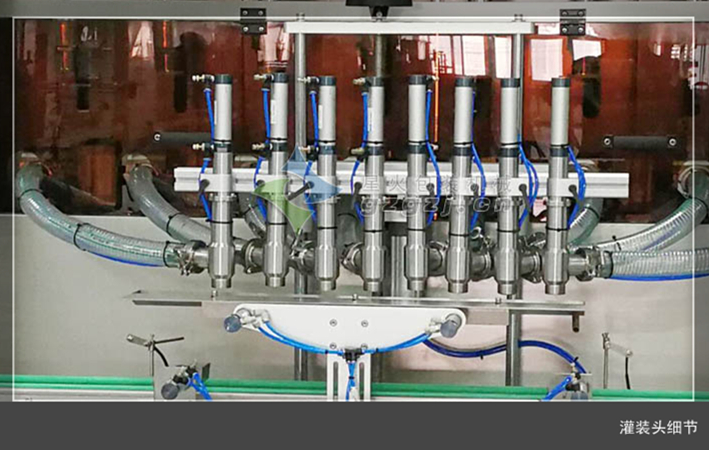 6、工作效率高,可搭配理瓶机、洗瓶机、直线旋盖机、玻璃瓶贴标机、自动喷码机、收瓶机等组成一条自动化灌装生产线;