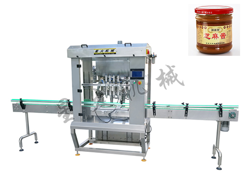 全自动芝麻酱灌装机是花生酱,鲜虾酱,辣椒酱,甜面酱等等的灌装机设备。芝麻酱灌装机根据客户不同的物料,配制型号不同的设备,全自动芝麻酱灌装机以适合各类物料,包括含有固态物质和粘稠体的灌装。全自动芝麻酱灌装机解决了广大客户的后顾之忧,灌装精度高,生产效率高,计量。芝麻酱灌装机专业开发的针对粘稠类物料的自动化灌装封口设备,它采用活塞定量,集机电、气动于一体,电器和气动元件选用世界知名品牌,全自动芝麻酱灌装机由PLC控制,设计合理,结构紧凑,外形美观,具有性能稳定可靠。