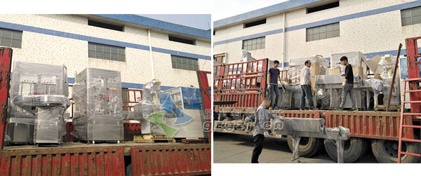 深圳市兴万家实业有限公司订购的瓶装调料粉灌装生产线正在装车