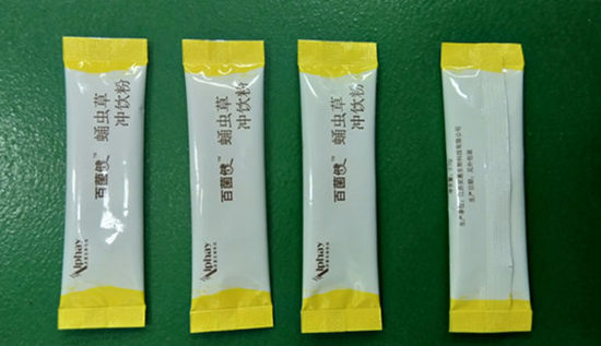 食用菌冲饮粉小袋亚虎网页成品 食用菌冲饮粉亚虎网页机设有自动打印批号或生产日期功能,亚虎网页成品上切易撕口。食用菌固体冲饮粉自动亚虎网页机的计量螺杆由步进电机驱动可获得极高的重复精度,生产材料全部选用不锈钢制成,与物料接触部位采用的是316不锈钢,完全符合医药GMP要求。