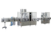 该生产线由全自动理瓶机、全自动多头数片(粒)灌装机、自动上盖旋盖机、电磁感应铝箔封口机、自动贴标机组成;适用于对塑料圆瓶,扁瓶的理瓶将杂 乱无章的瓶子倒入储瓶箱内,瓶子经过输送及理瓶,使瓶子直立有序地进入灌装机输送线,该台机器设备的使用大大减轻了操作工的劳动强度,是真正意义 上的完全自动生产线。