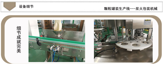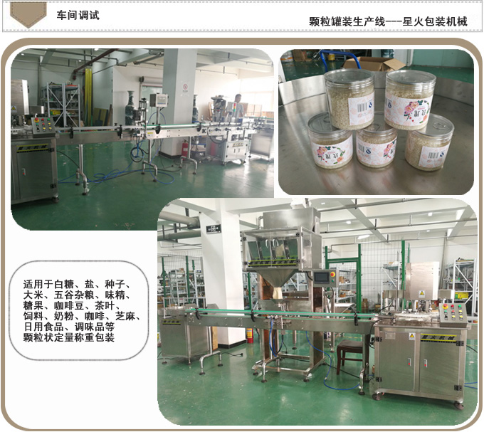 颗粒罐装生产线-全自动颗粒灌装亚虎网页生产线根据不同用户的瓶装,听装,桶装,标准瓶,异形瓶及实际产品特性和用户要求实现自动化;该设备能够实现人工上瓶、备料后,自动理瓶、称重、灌装、旋盖、封口、贴标、收罐等全过程的自动运行。减少劳动力,节约成品,实现无人化亚虎网页生产