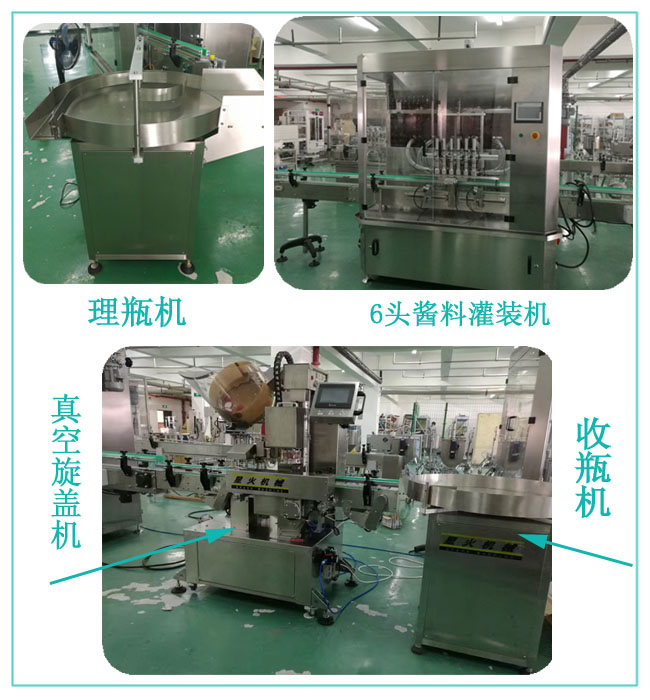 理瓶机、六头酱料灌装机、全自动真空旋盖机、收瓶机