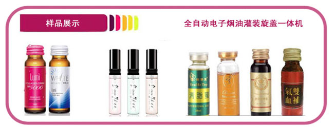 全自动电子烟油灌装机--烟油灌装加塞旋盖机主要适用于50毫升以内电子烟油、滴眼液、指甲油、眼影、精油等产品的自动灌装、加塞和旋盖。