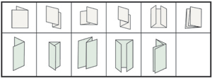 设计先进、制造精良、可用于设计范围内各种不同尺寸和厚薄纸张的折叠、可折成图例所示六种式样。调整简便,送纸流畅,无级调速,轻巧高效。